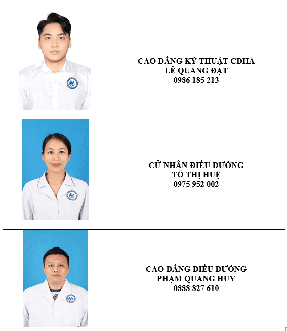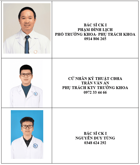 - Kỹ thuật y trưởng khoa: Cử nhân Kỹ thuật hình ảnh y học Trần Văn An.