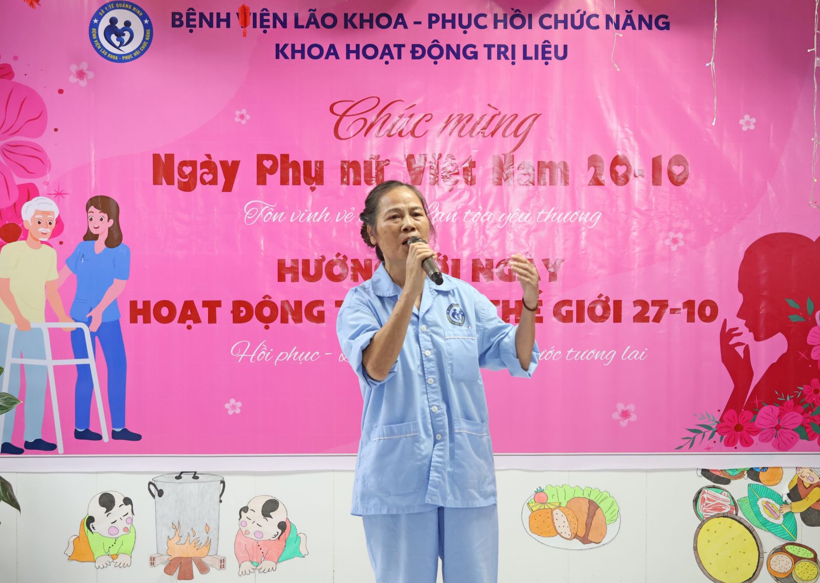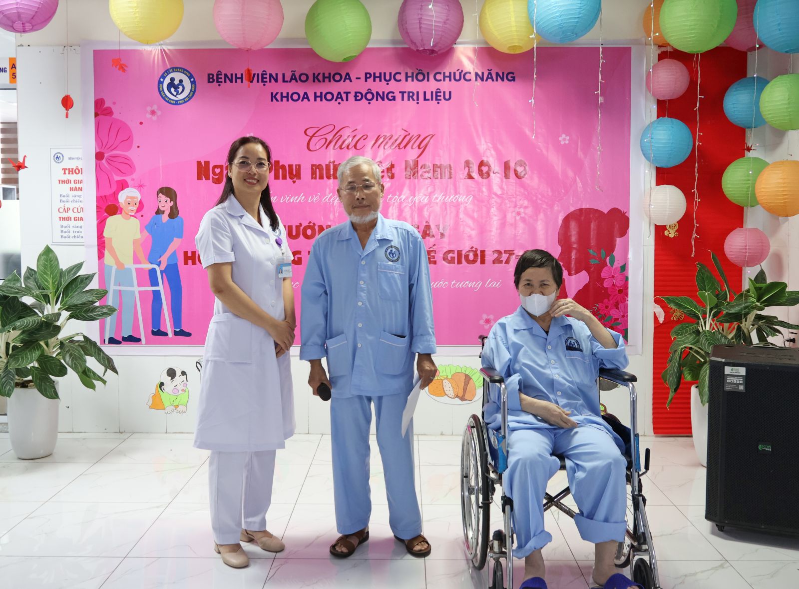 Nhân kỷ niệm Ngày Phụ nữ Việt Nam 20/10, hướng tới Ngày Hoạt động trị liệu Thế giới (27/10), Khoa Hoạt động trị liệu - Bệnh viện Lão khoa - Phục hồi chức năng đã tổ chức chương trình giao lưu đặc biệt dành cho người bệnh đang điều trị tại khoa, nhằm tạo không khí vui tươi, khích lệ tinh thần và tăng cường hiệu quả điều trị phục hồi.