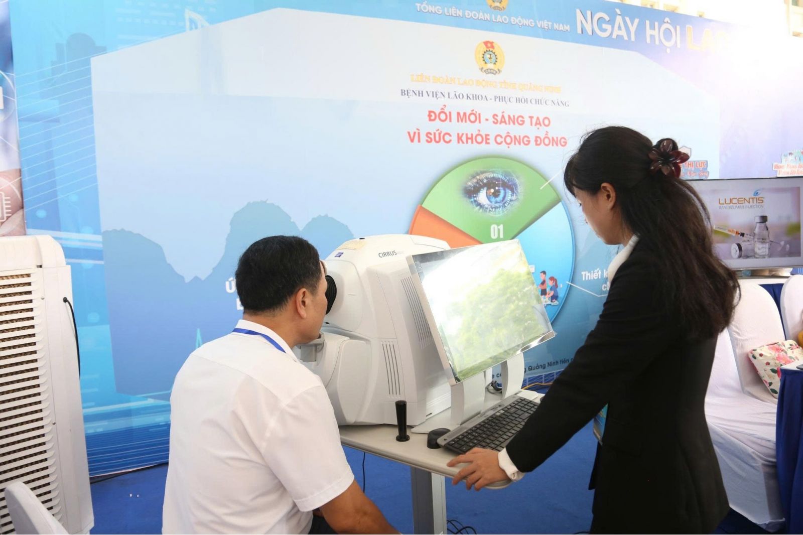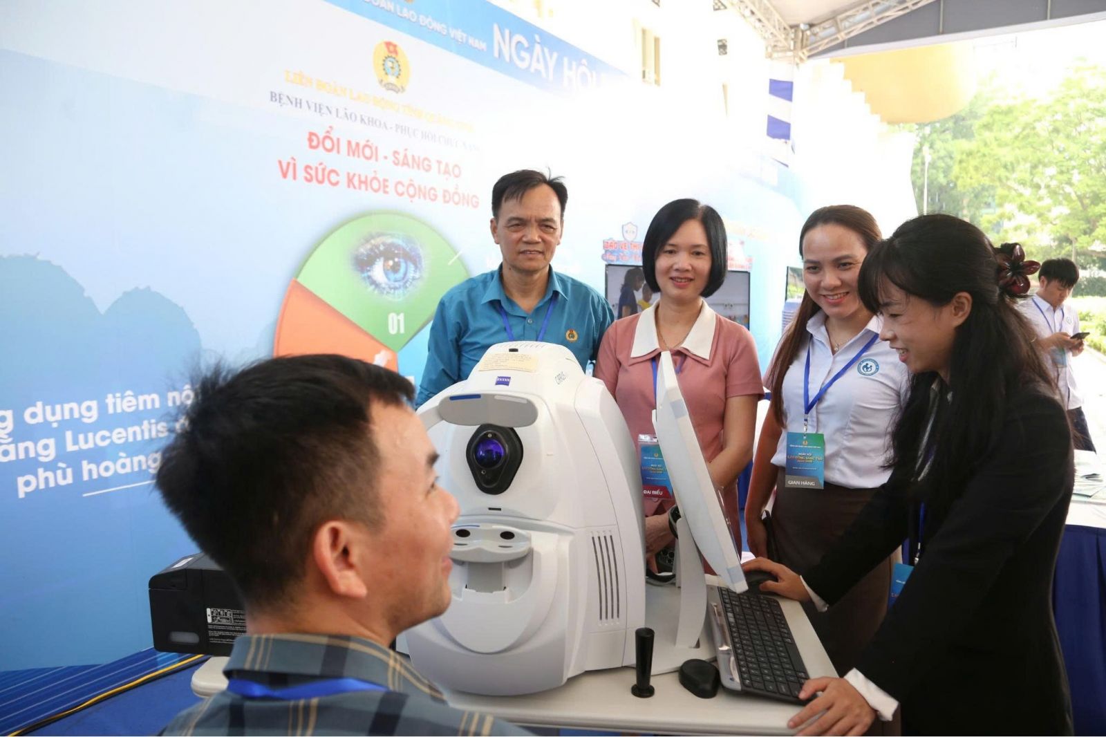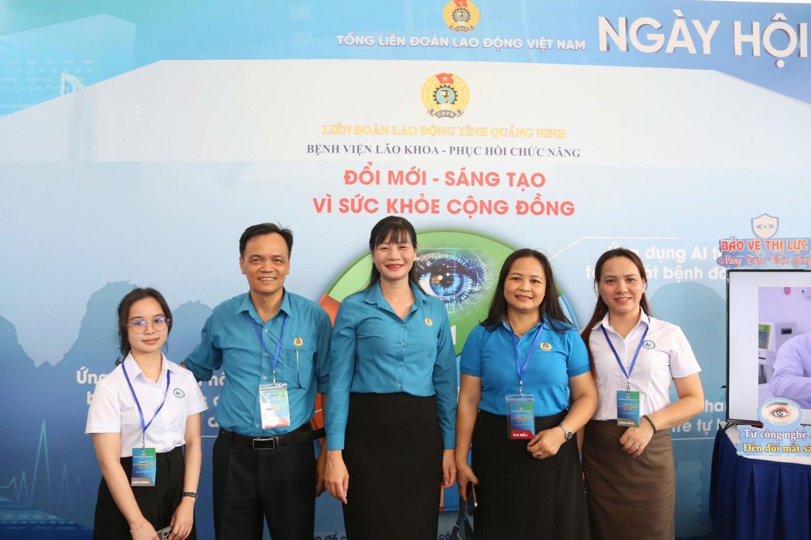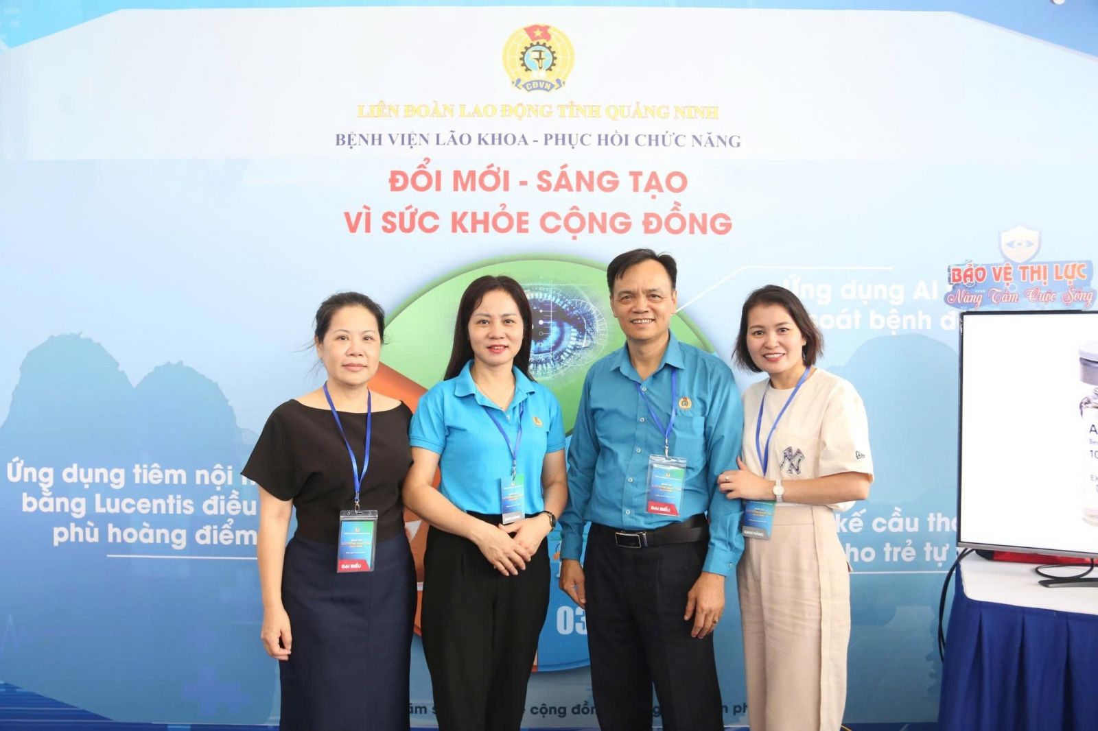Bệnh viện Lão khoa - Phục hồi chức năng Quảng Ninh vinh dự được Liên đoàn Lao động tỉnh Quảng Ninh lựa chọn đại diện tham dự sự kiện, với 03 sáng kiến, sản phẩm tiêu biểu được trưng bày, giới thiệu tại “Ngày hội Lao động sáng tạo năm 2025: 02 Đề tài "Nghiên cứu ứng dụng liệu pháp ức chế tăng sinh tân mạch với kỹ thuật tiêm nội nhãn bằng thuốc Ranibizumab (Lucentis) trong điều trị phù hoàng điểm do đái tháo đường tại Bệnh viện Lão khoa - Phục hồi chức năng" và "Ứng dụng trí tuệ nhân tạo (AI) hỗ trợ phân tích ảnh học trong tầm soát các bệnh lý võng mạc tại tỉnh Quảng Ninh" do BSCKII Trình Thị Vân Anh - Phó giám đốc, Chủ tịch công đoàn Bệnh viện Lão khoa - Phục hồi chức năng làm chủ nhiệm và sáng kiến “Cầu thang xương cá tập đứng, đi cho trẻ khó khăn về vận động” do Ths.BS Lê Thu Huyền - Phó Giám đốc Bệnh viện Lão khoa - Phục hồi chức năng làm chủ nhiệm.