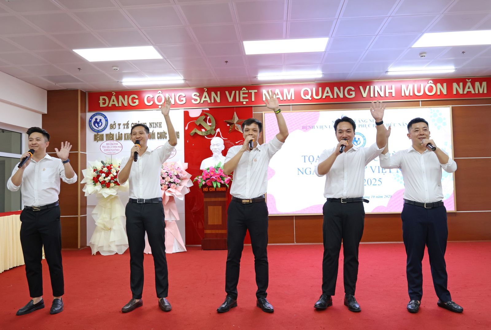 Đặc biệt, trong không khí rộn ràng của ngày hội, những tiết mục văn nghệ tươi vui, giàu cảm xúc do các nam công của Bệnh viện biểu diễn đã gửi gắm lời tri ân, sự tôn vinh và những lời chúc chân thành nhất tới toàn thể chị em phụ nữ - những bông hoa đẹp luôn tỏa sáng bằng tài năng, nhiệt huyết và tình yêu nghề trong ngôi nhà chung Bệnh viện Lão khoa - Phục hồi chức năng Quảng Ninh.