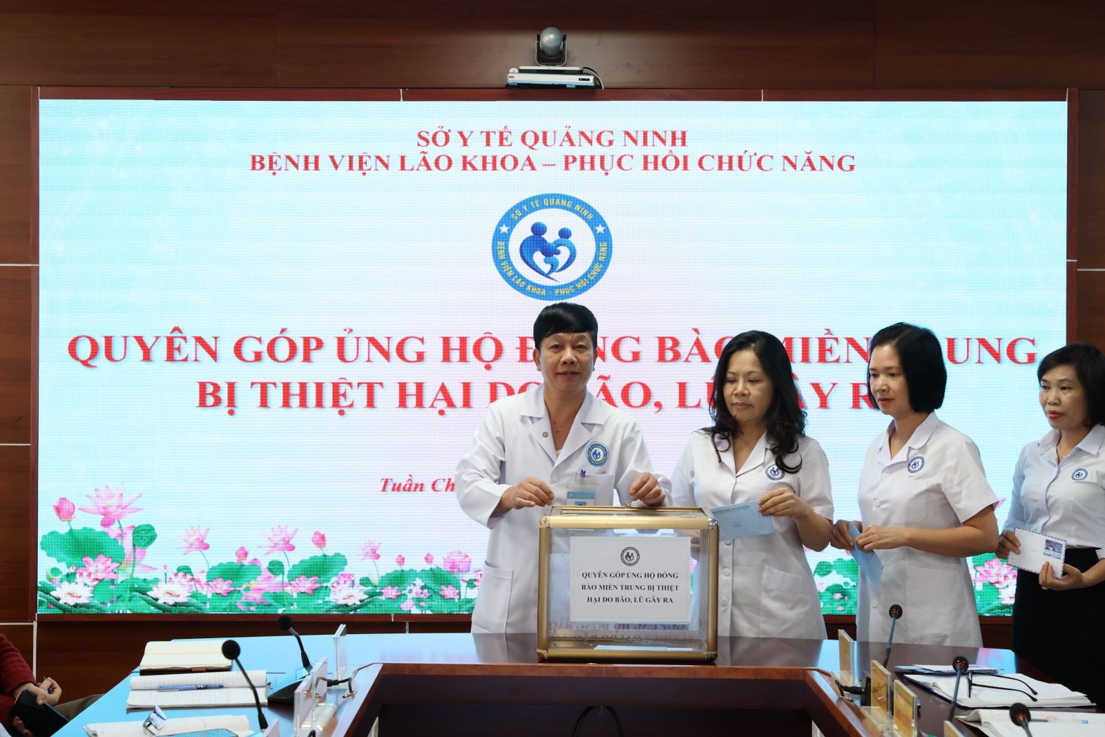 Trong những ngày miền Trung liên tiếp chịu ảnh hưởng nặng nề của bão lũ, tập thể cán bộ, y bác sĩ, điều dưỡng, nhân viên phục vụ, bảo vệ và người lao động của Bệnh viện Lão khoa - Phục hồi chức năng đã phát động hoạt động quyên góp nhằm chia sẻ khó khăn, hướng về đồng bào vùng lũ.