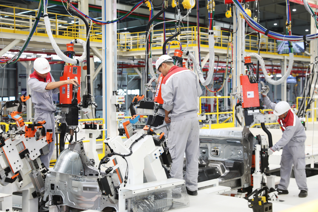 Dây chuyền sản xuất hiện đại tại Công ty CP Khu công nghiệp tổ hợp công nghệ Thành Công Việt Hưng. Ảnh: Đỗ Phương
