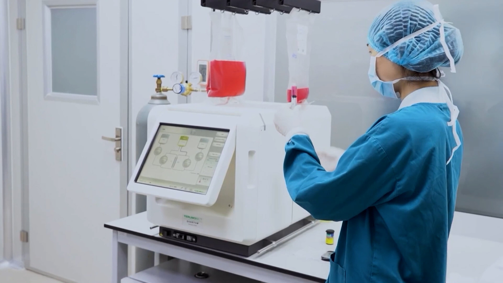 Nhân viên y tế thực hiện xét nghiệm tại Bệnh viện Vinmec Hạ Long.