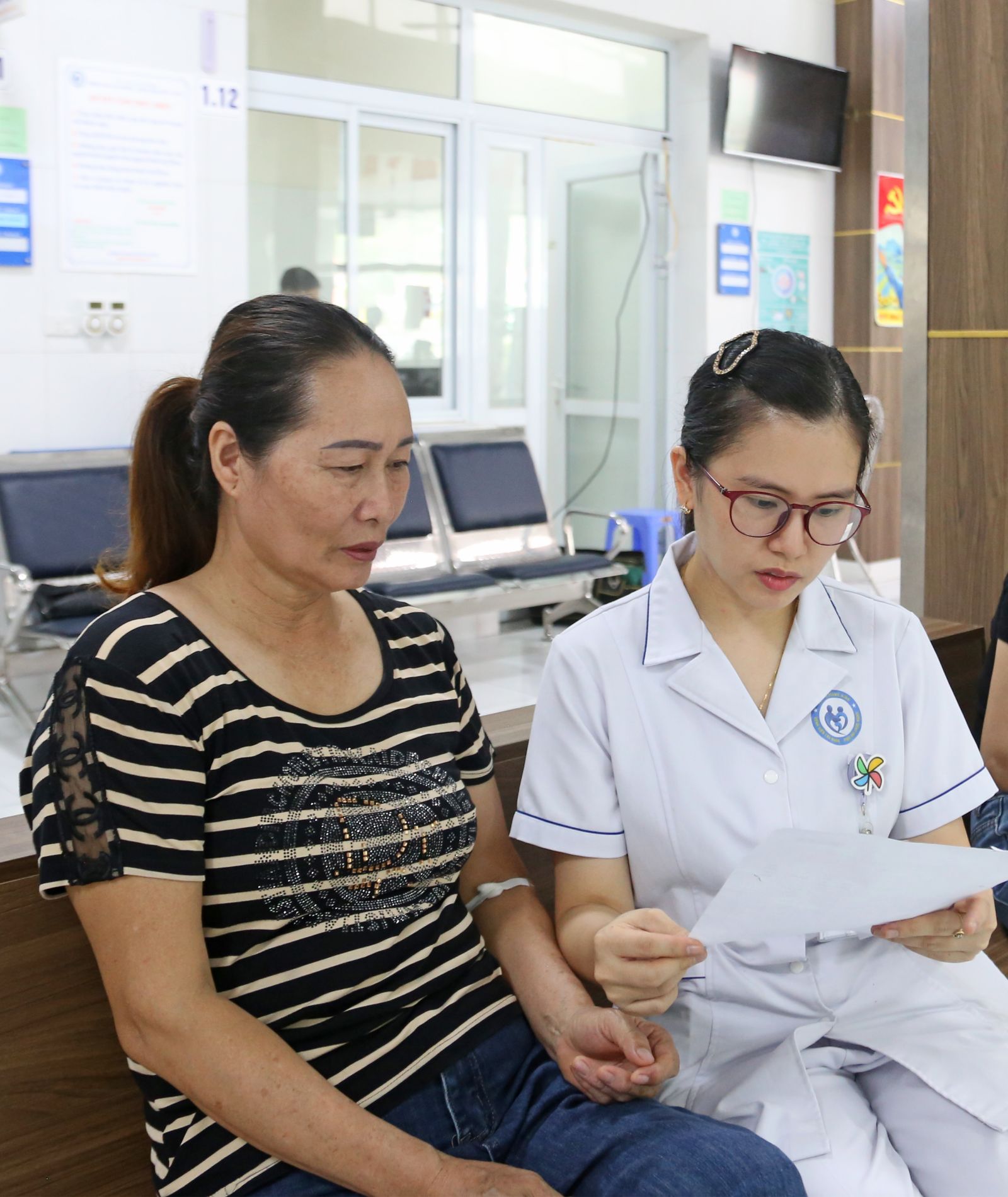 Nguyễn Thị Oanh (59 tuổi, phường Đại Yên) đến khám bệnh tại Bệnh viện