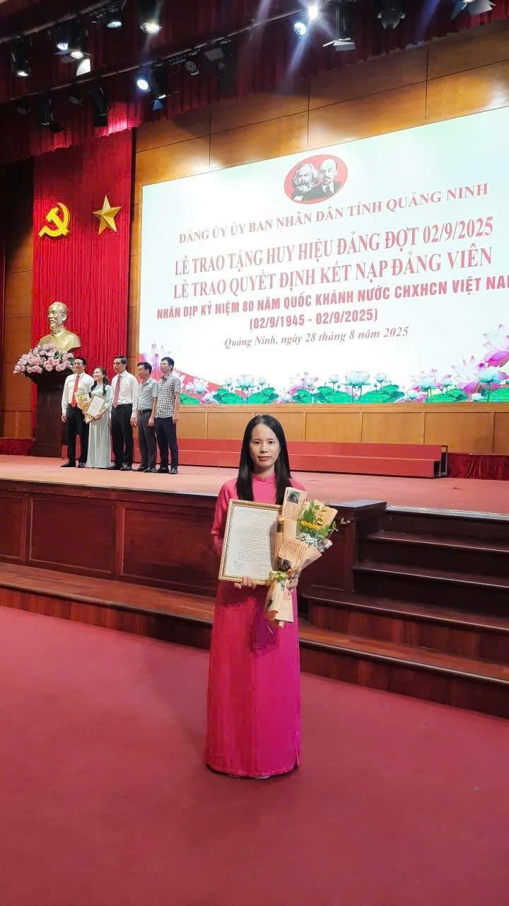 Trong không khí thiêng liêng chào mừng kỷ niệm 80 năm Quốc khánh 2/9 và hướng tới 65 năm giải phóng Khu mỏ – thành lập tỉnh Quảng Ninh (30/10/1960 – 30/10/2025), quần chúng ưu tú Nguyễn Thị Ngọc - Chi bộ Phục hồi chức năng – Y học cổ truyền, trực thuộc Đảng bộ bộ phận Bệnh viện Lão khoa – Phục hồi chức năng vinh dự được Ban Thường vụ Đảng ủy UBND tỉnh trao Quyết định kết nạp Đảng trong Lễ trao Huy hiệu Đảng và Quyết định kết nạp đảng viên mới diễn ra ngày 28/8/2025.