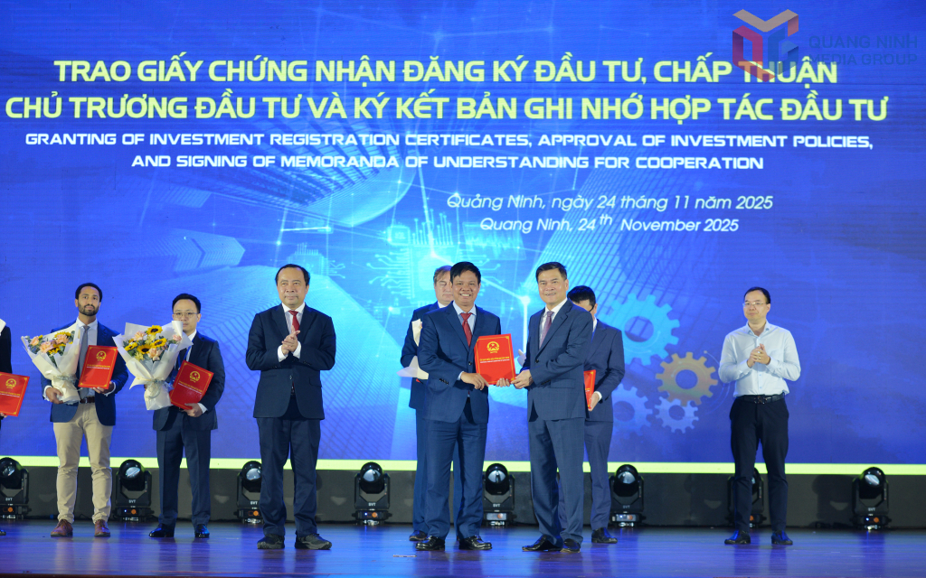 Tỉnh Quảng Ninh tổ chức trao quyết định chấp thuận chủ trương đầu tư, chứng nhận đăng ký đầu tư cho các dự án trong lĩnh vực KHCN (tháng 11/2025).