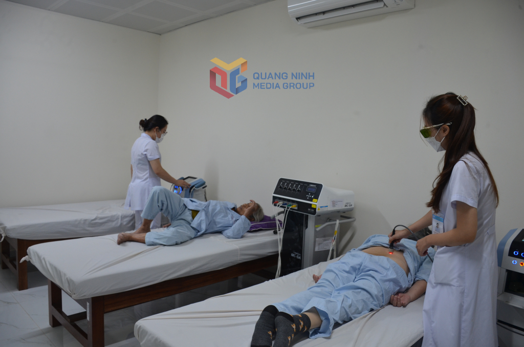 Các y, bác sĩ Bệnh viện Lão khoa - Phục hồi chức năng Quảng Ninh điều trị cho người cao tuổi. Ảnh: Nguyễn Hoa