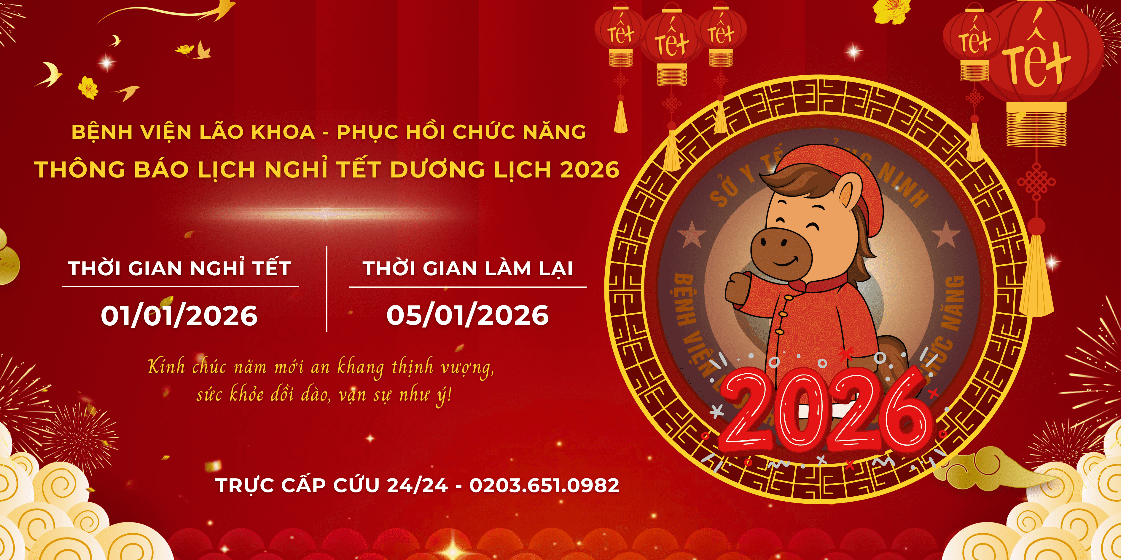 Bệnh viện Lão khoa - Phục hồi chức năng thông báo lịch nghỉ Tết Dương lịch năm 2026: