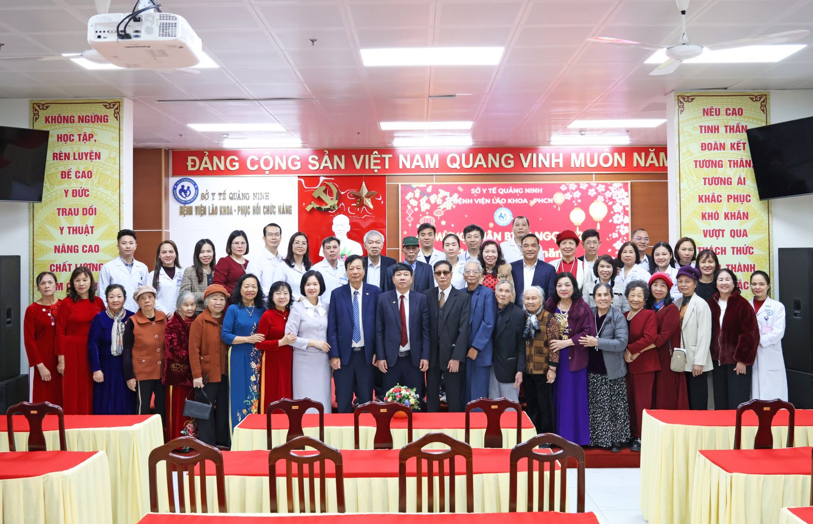 Nhân dịp Tết Nguyên đán Bính Ngọ 2026 và hướng tới kỷ niệm 71 năm Ngày Thầy thuốc Việt Nam (27/02/1955 - 27/02/2026), Bệnh viện Lão khoa - Phục hồi chức năng Quảng Ninh long trọng tổ chức gặp mặt các thế hệ cán bộ, viên chức, người lao động đã nghỉ hưu qua các thời kỳ. Đây là hoạt động thường niên mang ý nghĩa sâu sắc, tiếp nối truyền thống “uống nước nhớ nguồn”, sự trân trọng và biết ơn đối với những đóng góp to lớn của các thế hệ đi trước trong quá trình hình thành, xây dựng và phát triển Bệnh viện.