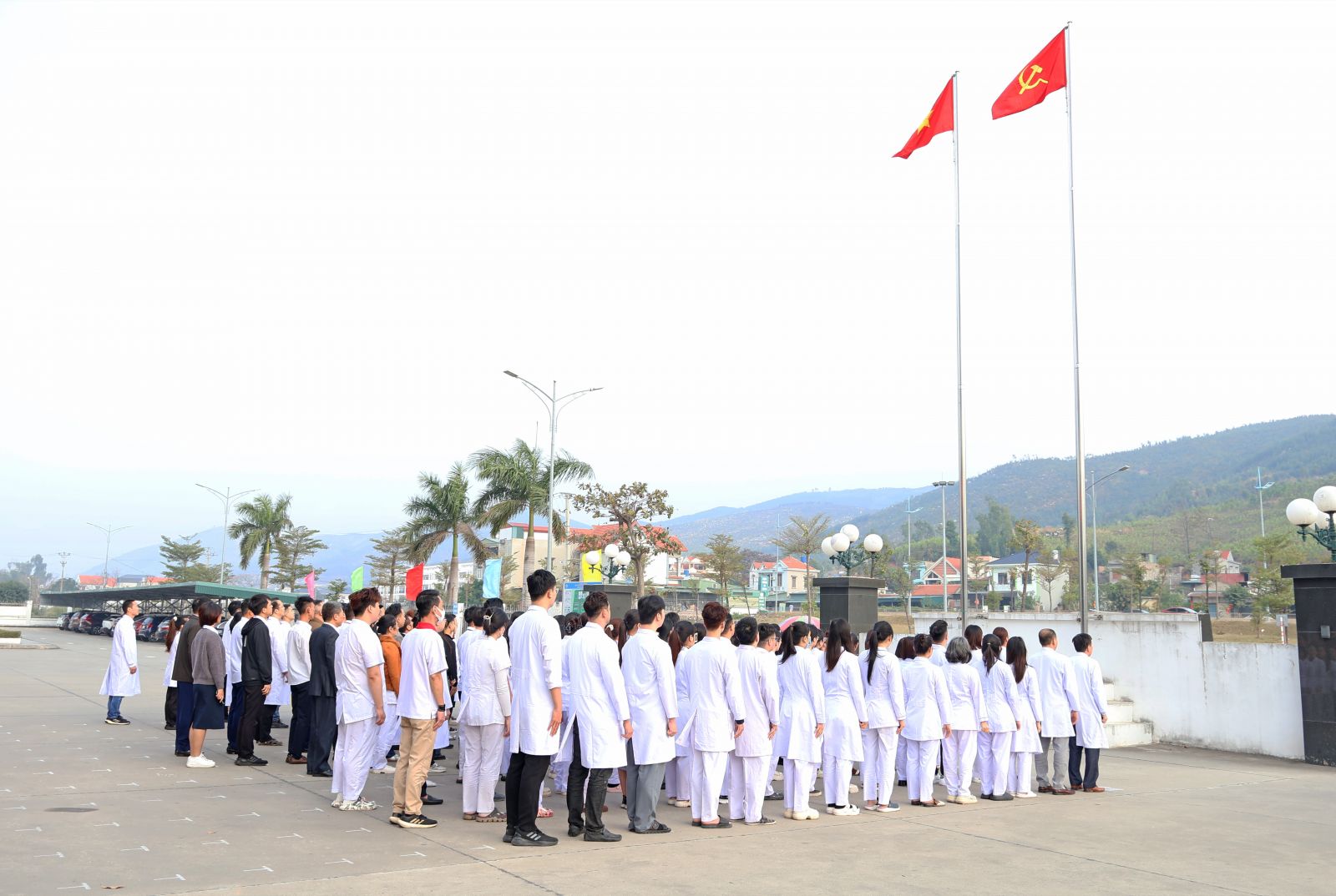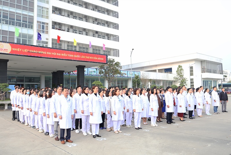Chào mừng Khai mạc Đại hội XIV của Đảng, sáng thứ 2 ngày 19/01/2026, Bệnh viện tổ chức nghi lễ chào cờ Tổ quốc và hát Quốc ca trong không khí trang nghiêm, thành kính. Toàn thể cán bộ, viên chức, người lao động bệnh viện đứng nghiêm, hướng về Quốc kỳ, đồng thanh hát vang Quốc ca, thể hiện niềm tự hào dân tộc, niềm tin vững chắc vào sự lãnh đạo của Đảng và tinh thần sẵn sàng cống hiến vì sự nghiệp bảo vệ, chăm sóc và nâng cao sức khỏe Nhân dân.