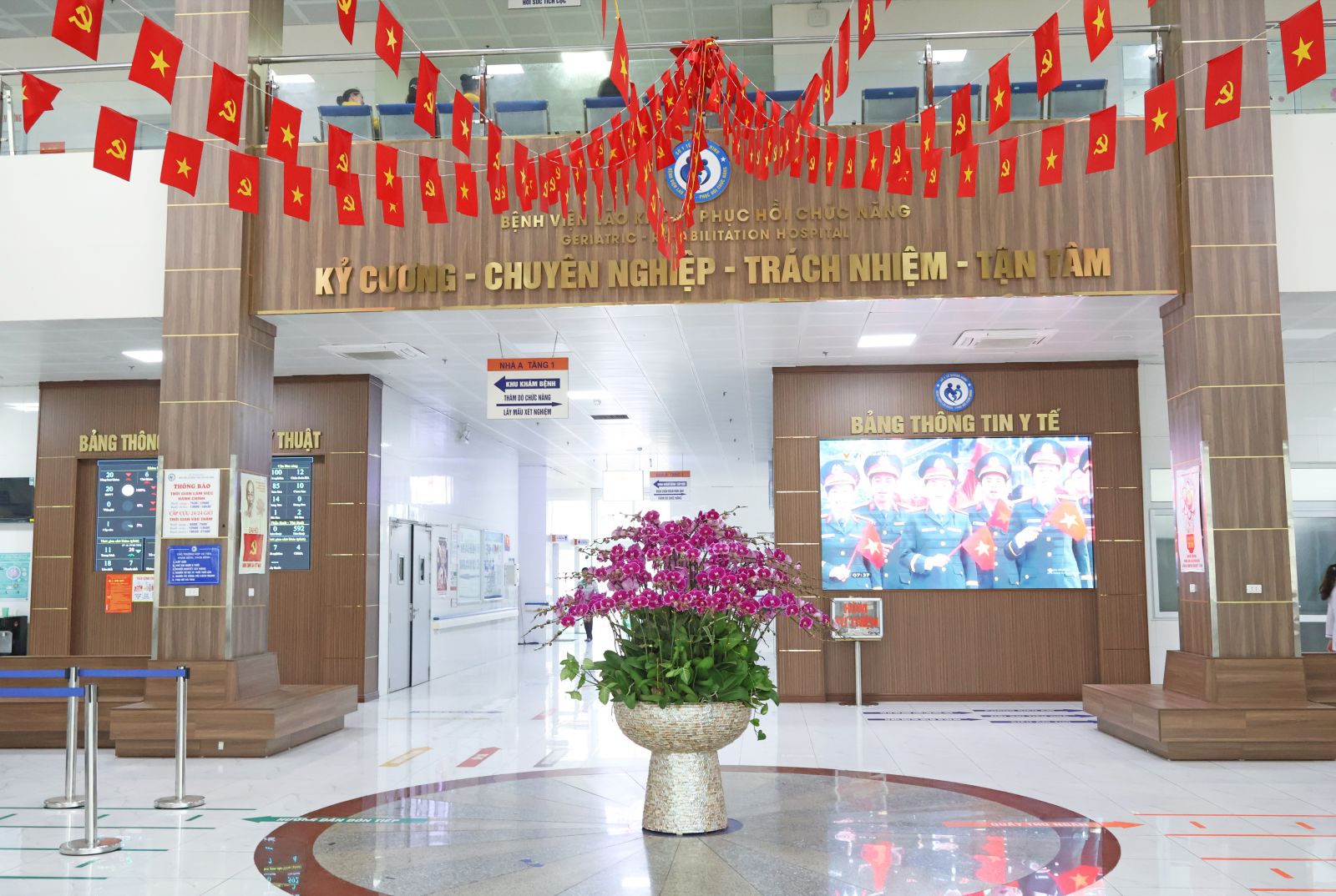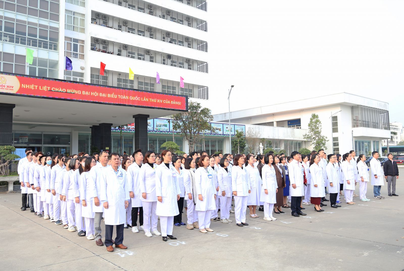 Cùng với đó, băng rôn, khẩu hiệu tuyên truyền chào mừng Đại hội XIV của Đảng được treo trang trọng, đồng bộ tại các khu vực trong khuôn viên bệnh viện, tạo nên không khí chính trị sôi nổi, lan tỏa tinh thần thi đua yêu nước, khơi dậy ý thức trách nhiệm và quyết tâm hoàn thành tốt nhiệm vụ của mỗi cán bộ, viên chức, người lao động.