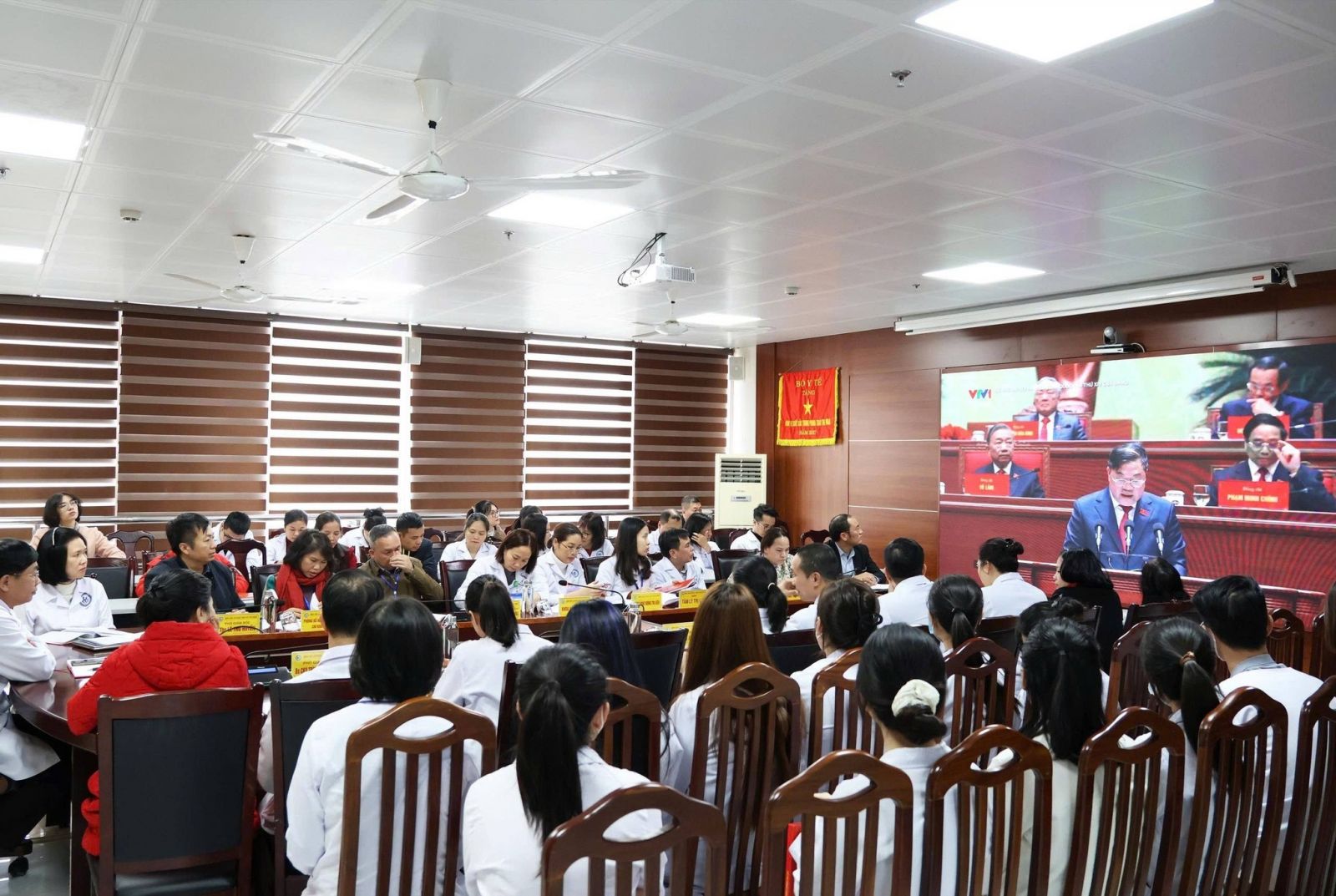 Trước khi bước vào nội dung sinh hoạt chuyên đề, toàn thể đảng viên Đảng bộ bộ phận Bệnh viện đã cùng theo dõi truyền hình trực tiếp Lễ bế mạc Đại hội đại biểu toàn quốc lần thứ XIV của Đảng. Việc theo dõi Lễ bế mạc thể hiện tinh thần trách nhiệm chính trị, sự quan tâm sâu sắc của mỗi cán bộ, đảng viên đối với sự kiện trọng đại của đất nước; đồng thời góp phần củng cố niềm tin, thống nhất ý chí và quyết tâm sớm đưa tinh thần, nghị quyết của Đại hội vào thực tiễn công tác.