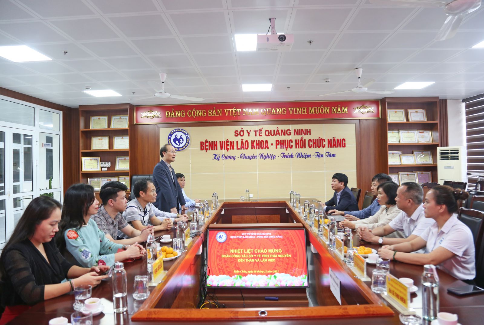 BSCKII Phạm Quang Dũng - Giám đốc Bệnh viện Lão khoa - Phục hồi chức năng Quảng Ninh bày tỏ sự vui mừng được đón tiếp đoàn công tác Sở Y tế Thái Nguyên