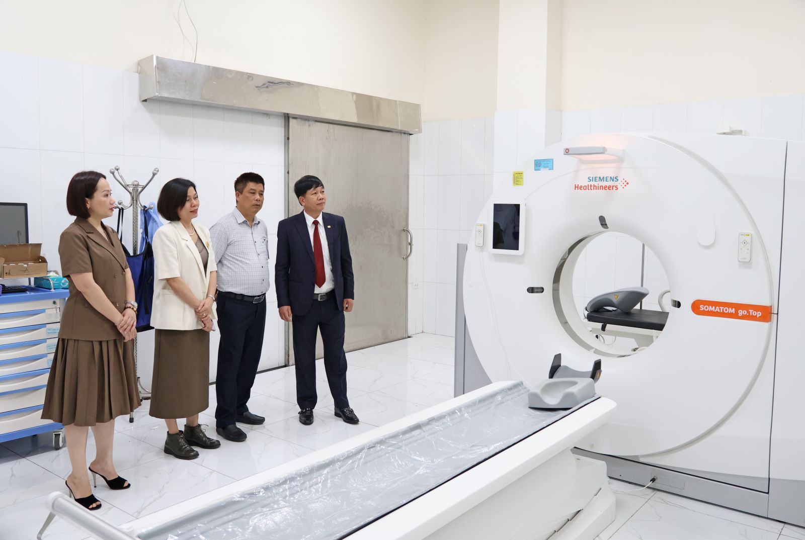 Đoàn công tác đã tham quan thực tế tại các khoa/phòng của Bệnh viện, đặc biệt là Khu điều trị Vật lý trị liệu kỹ thuật cao, Trung tâm Oxy cao áp và Khu Chẩn đoán hình ảnh kỹ thuật cao. Tại Trung tâm Oxy cao áp, hai bên trao đổi về chỉ định điều trị, cơ chế tác động sinh học của liệu pháp oxy cao áp trong cải thiện tưới máu mô, thúc đẩy phục hồi ở các bệnh lý thần kinh, chấn thương và vết thương chậm liền; đồng thời nhấn mạnh yêu cầu tuân thủ nghiêm ngặt quy trình vận hành, bảo đảm an toàn người bệnh. Ở lĩnh vực vật lý trị liệu, các phương pháp điện trị liệu, sóng xung kích, laser công suất cao và hệ thống tập vận động phục hồi chức năng được ứng dụng đồng bộ, hướng tới mục tiêu rút ngắn thời gian điều trị, nâng cao khả năng vận động và chất lượng sống cho người bệnh, đặc biệt là người cao tuổi và người bệnh sau tai biến.