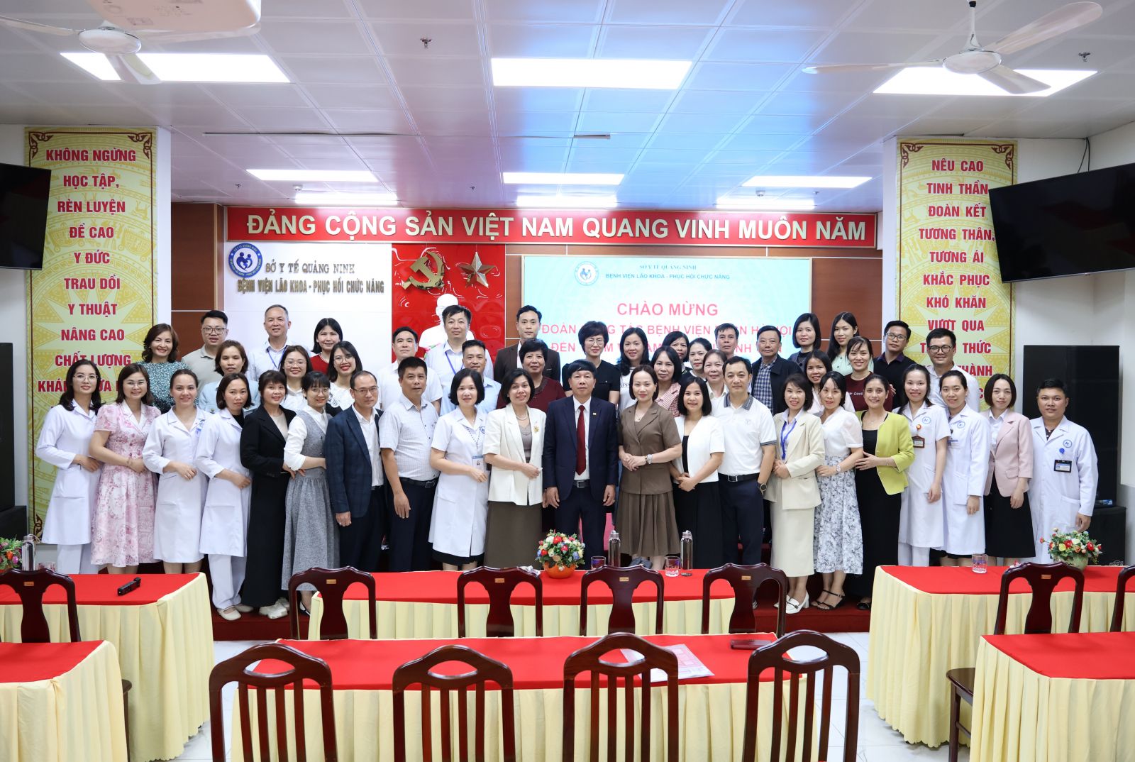 Chiều 27/02/2026, Bệnh viện Lão khoa - Phục hồi chức năng Quảng Ninh đón tiếp Đoàn công tác Bệnh viện Phục hồi Chức năng Hà Nội đến tham quan, làm việc và trao đổi kinh nghiệm trong công tác quản lý, phát triển chuyên môn và ứng dụng khoa học - công nghệ trong khám, điều trị phục hồi chức năng.