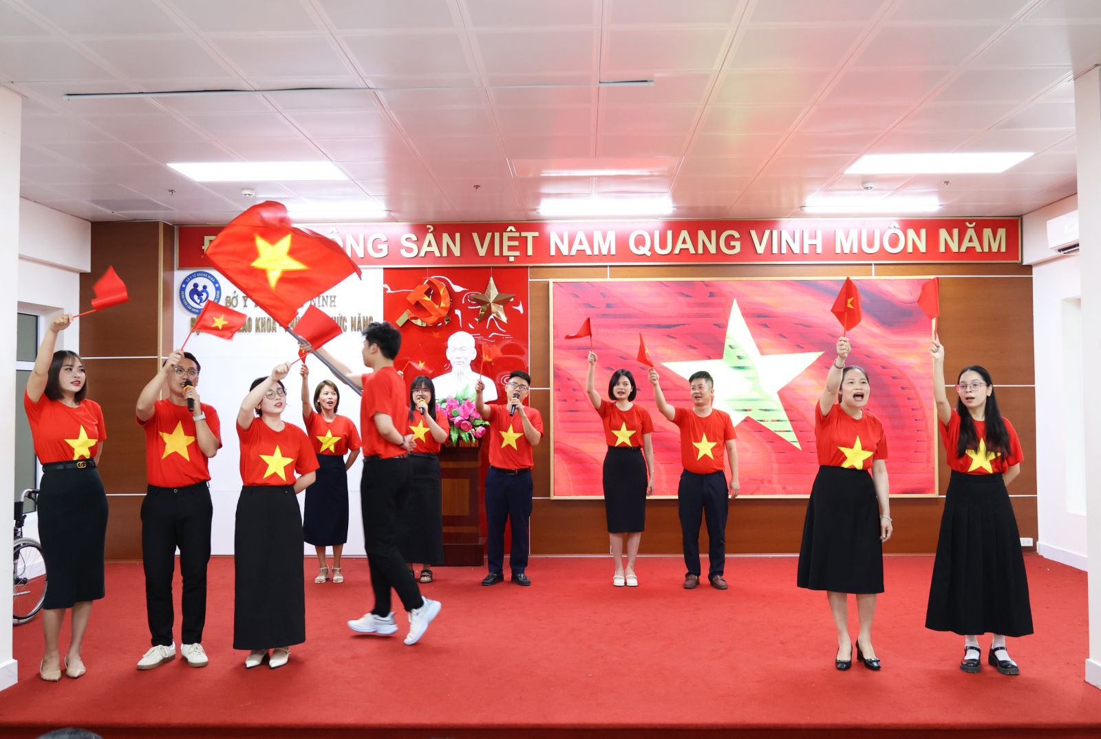 - Hát tốp ca Nhà tôi có treo một lá cờ - Đội 3: Phòng KHTH - CĐT + Phòng QLCL & CNTT + Khoa Nội tổng hợp