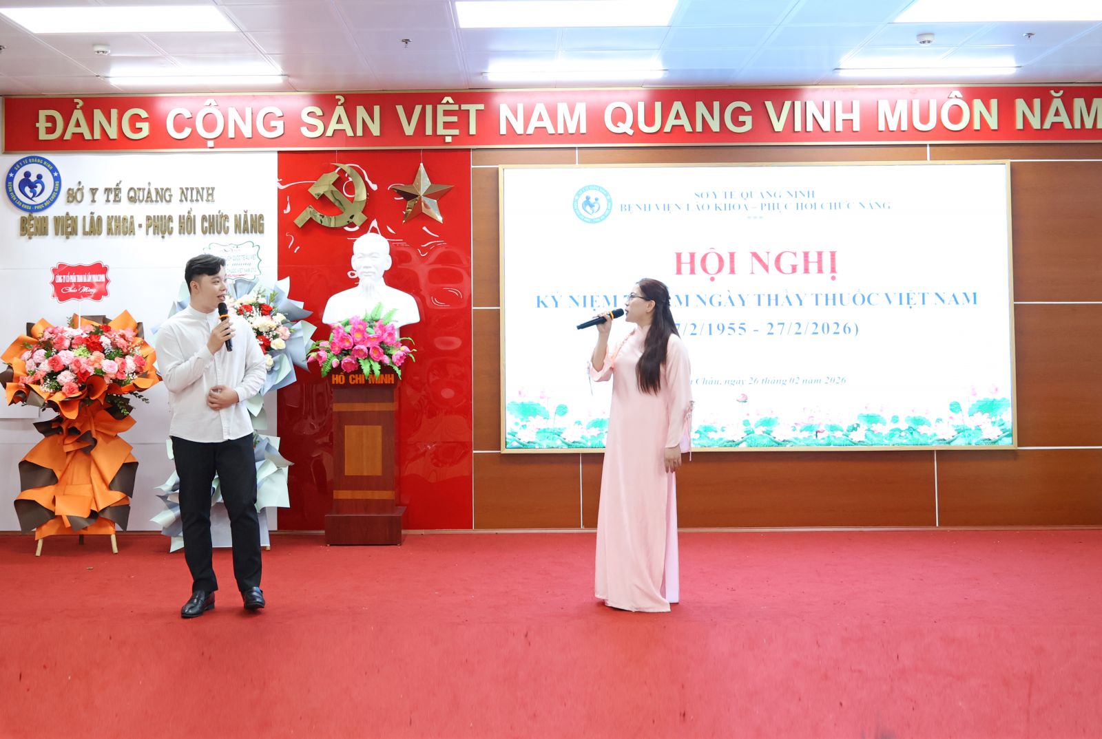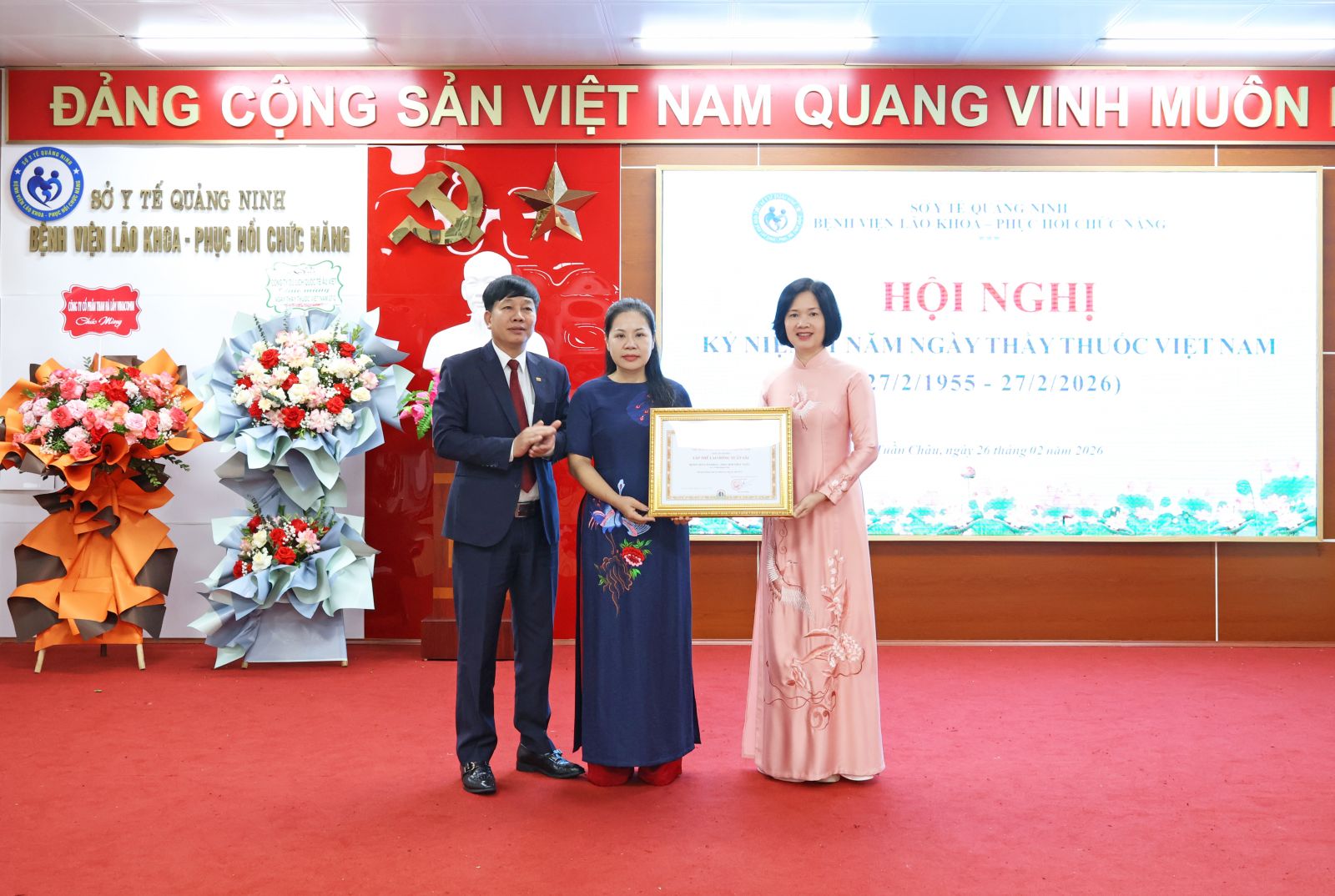 Sáng 26/02/2026, Bệnh viện Lão khoa - Phục hồi chức năng Quảng Ninh long trọng tổ chức Hội nghị Kỷ niệm 71 năm Ngày Thầy thuốc Việt Nam (27/02/1955 - 27/02/2026) và trao thưởng cho các tập thể, cá nhân có thành tích xuất sắc trong năm 2025. Hội nghị có sự tham gia của Ban Giám đốc, cán bộ chủ chốt và đại diện viên chức, người lao động toàn Bệnh viện, diễn ra trong không khí trang trọng, ấm áp và đầy tự hào về truyền thống vẻ vang của ngành y tế Việt Nam.