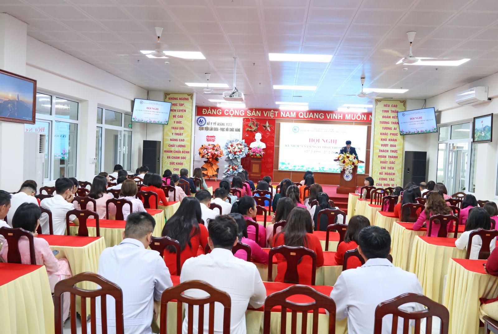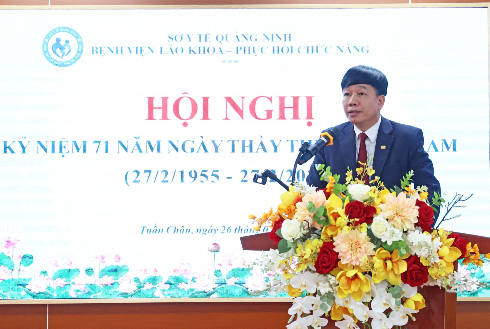 Phát biểu khai mạc Hội nghị, TTUT.BSCKII Phạm Quang Dũng - Bí thư Đảng bộ bộ phận, Giám đốc Bệnh viện đã ôn lại ý nghĩa lịch sử của Ngày Thầy thuốc Việt Nam, nhấn mạnh lời dạy của Chủ tịch Hồ Chí Minh “Lương y phải như từ mẫu” vẫn luôn là kim chỉ nam cho mọi hoạt động chuyên môn và rèn luyện y đức của mỗi cán bộ y tế. Đồng chí bày tỏ sự tri ân sâu sắc tới các thế hệ cán bộ, viên chức, người lao động đã và đang cống hiến tâm huyết, trí tuệ cho sự phát triển của Bệnh viện; đồng thời ghi nhận, biểu dương tinh thần đoàn kết, nỗ lực vượt khó, không ngừng đổi mới, nâng cao chất lượng khám chữa bệnh, chăm sóc và phục hồi chức năng cho người cao tuổi và người bệnh trên địa bàn tỉnh. Trước yêu cầu ngày càng cao của sự nghiệp bảo vệ, chăm sóc và nâng cao sức khỏe nhân dân, đồng chí kêu gọi toàn thể cán bộ, viên chức, người lao động tiếp tục phát huy truyền thống, tăng cường kỷ cương, trách nhiệm, đẩy mạnh ứng dụng khoa học công nghệ, chuyển đổi số, nâng cao chất lượng dịch vụ y tế, xây dựng Bệnh viện ngày càng phát triển bền vững, xứng đáng với niềm tin của nhân dân.