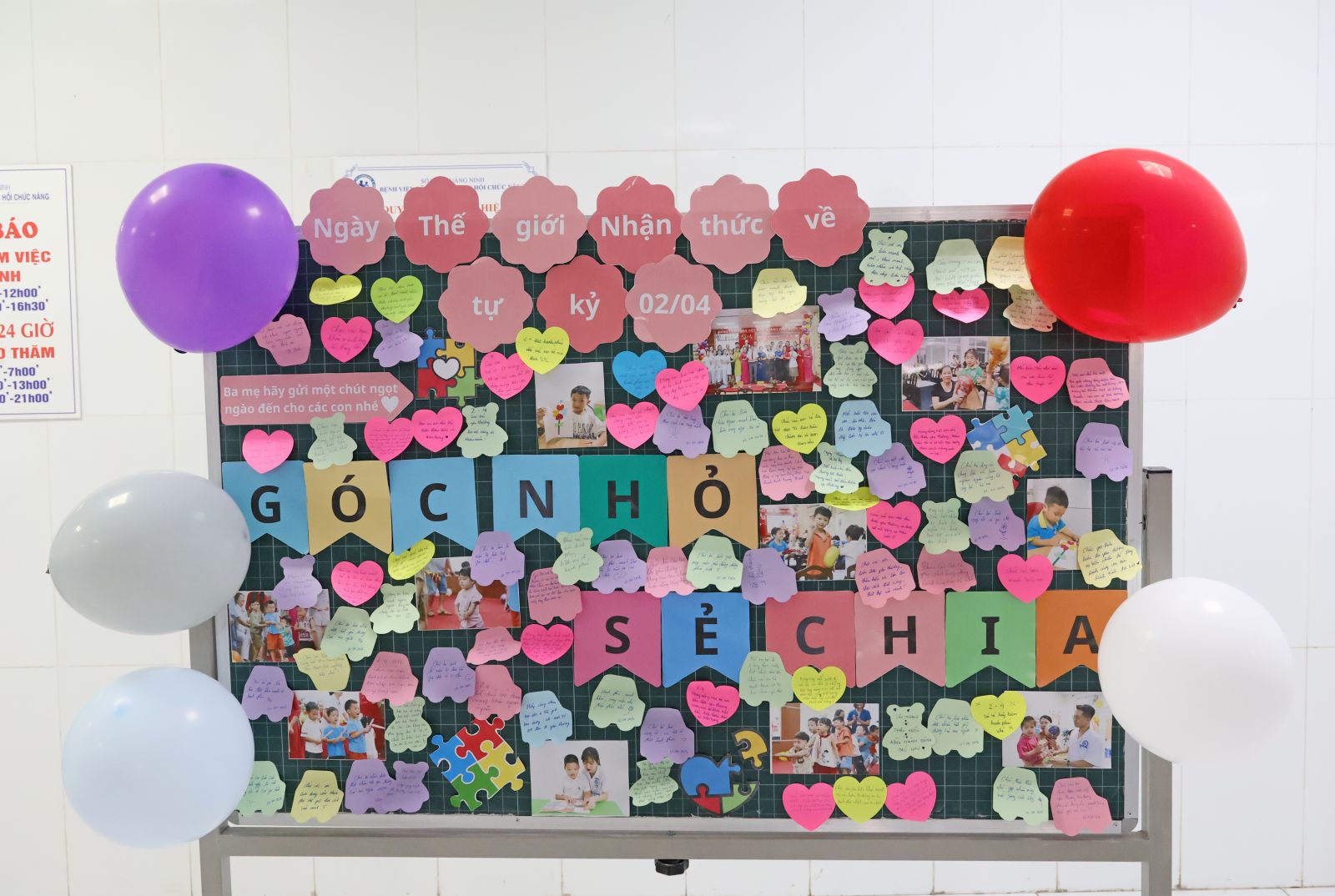 Trong khuôn khổ chương trình, các cán bộ y tế của Khoa đã trao tặng những món quà nhỏ xinh, mang theo tình cảm ấm áp gửi tới các em bé. Đặc biệt, “Góc nhỏ sẻ chia” được xây dựng như một không gian kết nối đầy nhân văn - nơi các bậc phụ huynh, ông bà, người thân và đội ngũ y, bác sĩ cùng gửi gắm những lời chúc tốt đẹp, những thông điệp yêu thương dành cho các em nhỏ, nhất là các em mắc rối loạn phổ tự kỷ.