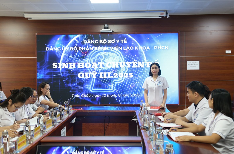 Thực hiện Kế hoạch sinh hoạt chuyên đề năm 2025, ngày 12/8/2025, Đảng bộ bộ phận Bệnh viện Lão khoa - Phục hồi chức năng đã tổ chức buổi sinh hoạt chuyên đề quý III với chủ đề: “Lãnh đạo, chỉ đạo việc ứng dụng khoa học công nghệ, đổi mới sáng tạo và chuyển đổi số để nâng cao chất lượng khám bệnh, chữa bệnh tại Đảng bộ bộ phận Bệnh viện Lão khoa - Phục hồi chức năng”.