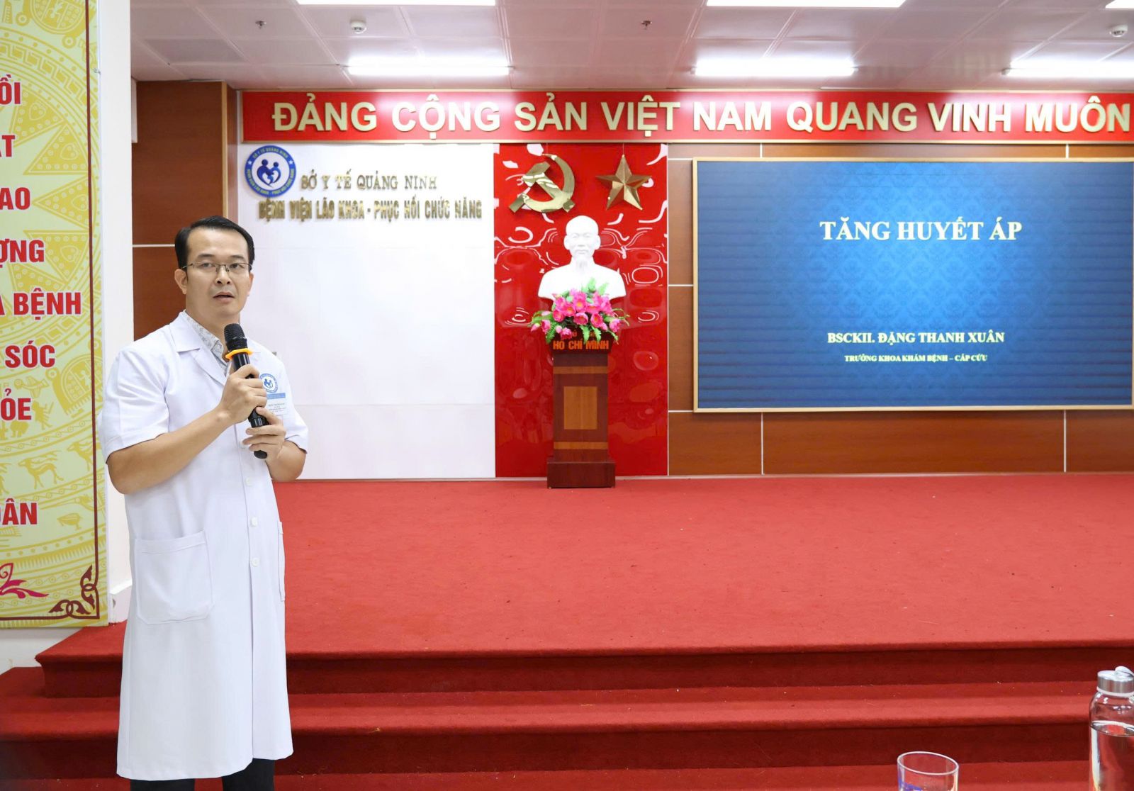 Trong chương trình, BS.CKII Đặng Thanh Xuân - Trưởng khoa Khám bệnh - Cấp cứu đã trình bày Chuyên đề “Tăng huyết áp - cập nhật chẩn đoán và điều trị” cung cấp những thông tin cập nhật về dịch tễ, chẩn đoán và điều trị tăng huyết áp, đồng thời nhấn mạnh vai trò của thay đổi lối sống, tuân thủ điều trị để phòng ngừa biến chứng tim mạch ở người cao tuổi.