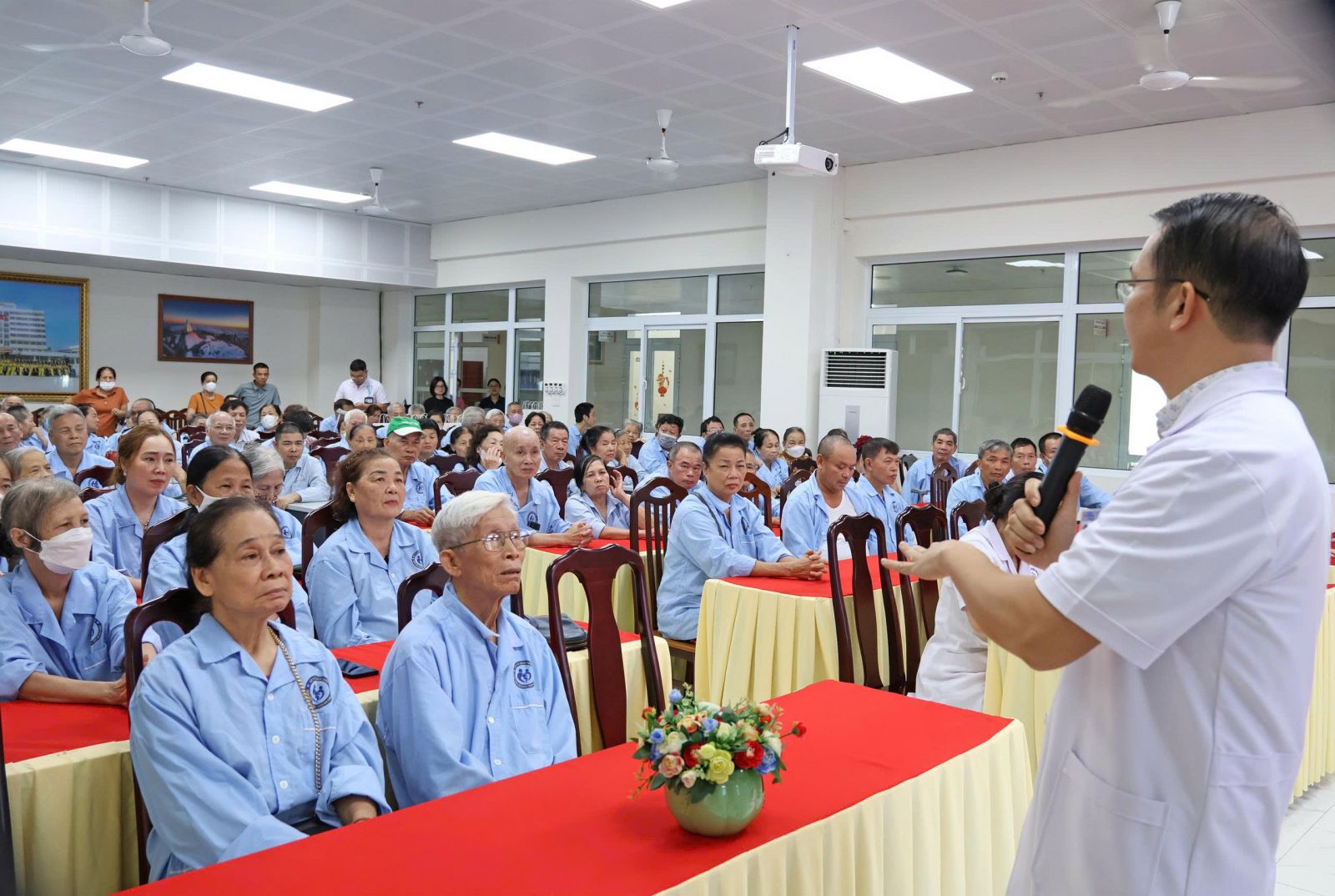 Trong phần thảo luận, nhiều câu hỏi thiết thực liên quan đến kiểm soát huyết áp, chế độ dinh dưỡng, cải thiện giấc ngủ đã được các bác sĩ tận tình giải đáp, mang lại những kiến thức bổ ích, dễ áp dụng vào thực tiễn đời sống của người cao tuổi.