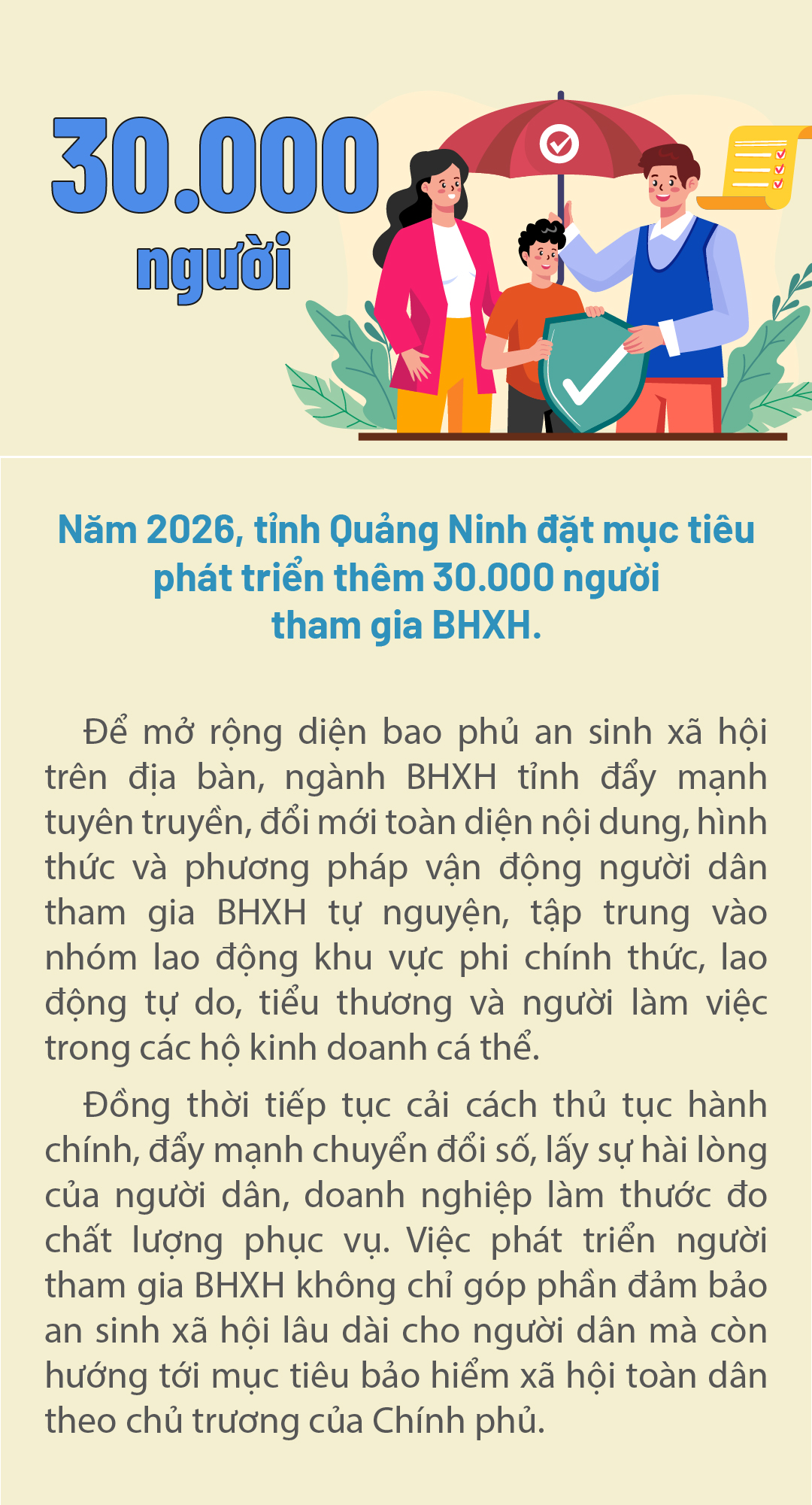 30.000 người - là mục tiêu phát triển thêm số người tham gia BHXH mà tỉnh Quảng Ninh đặt ra vào năm 2026