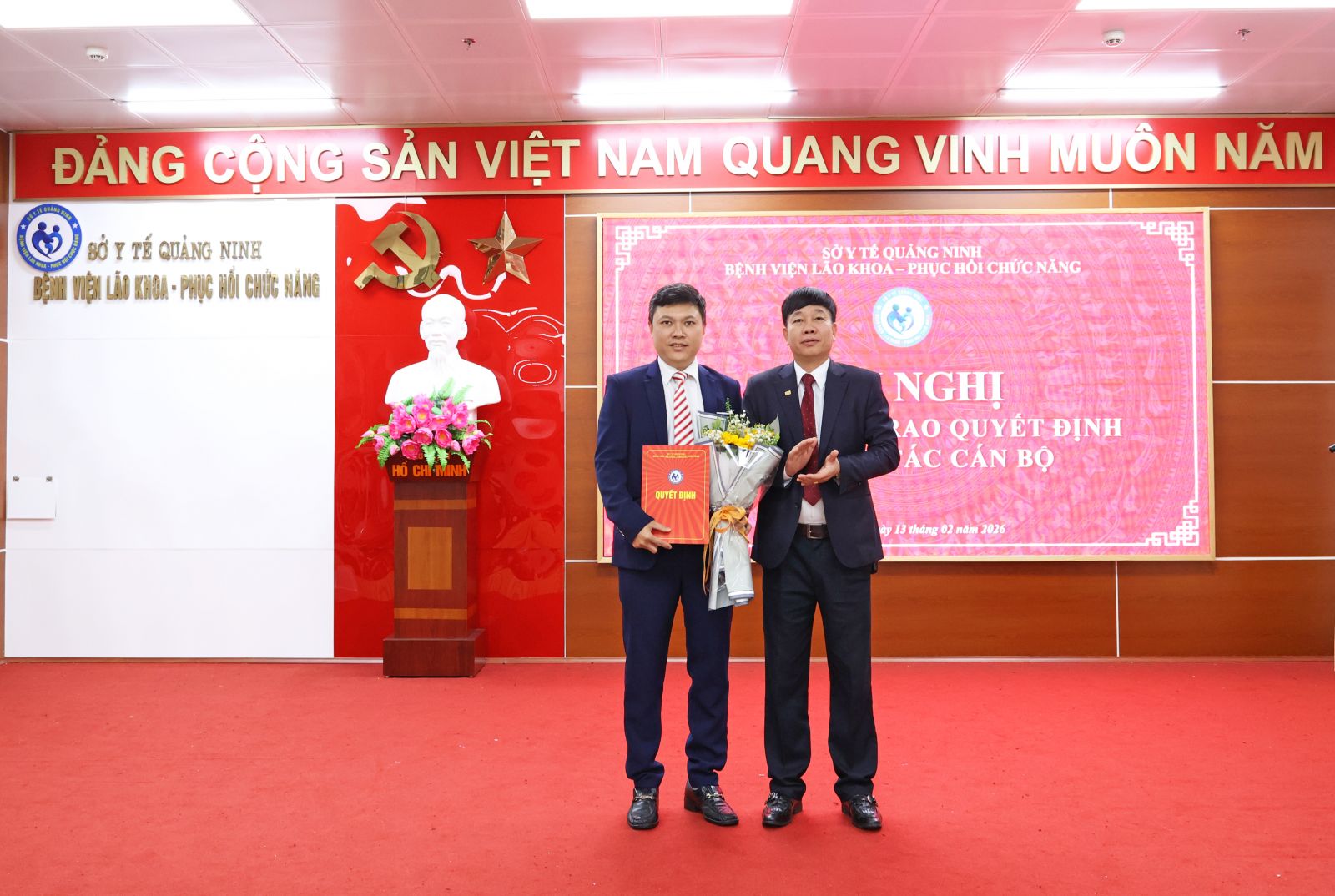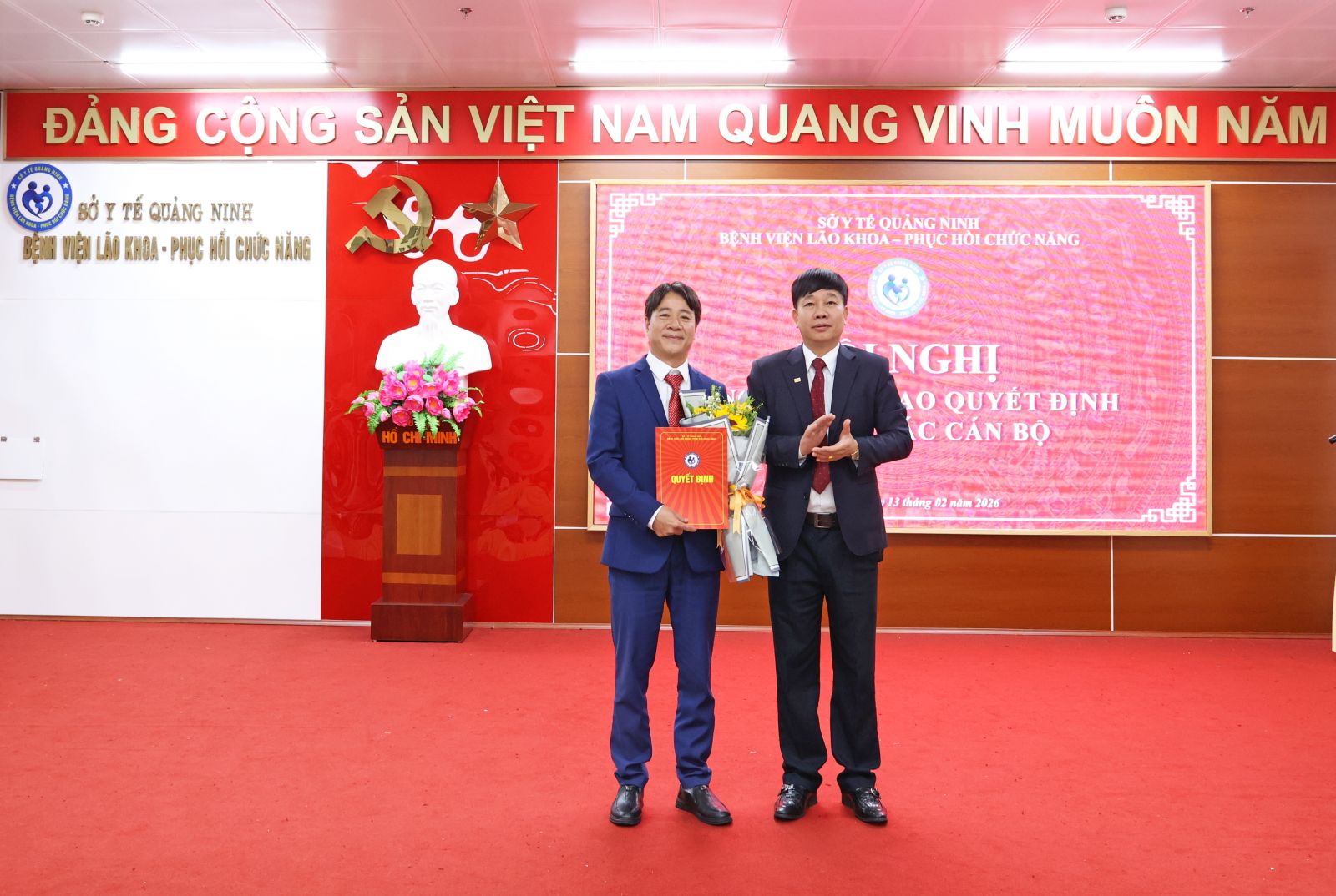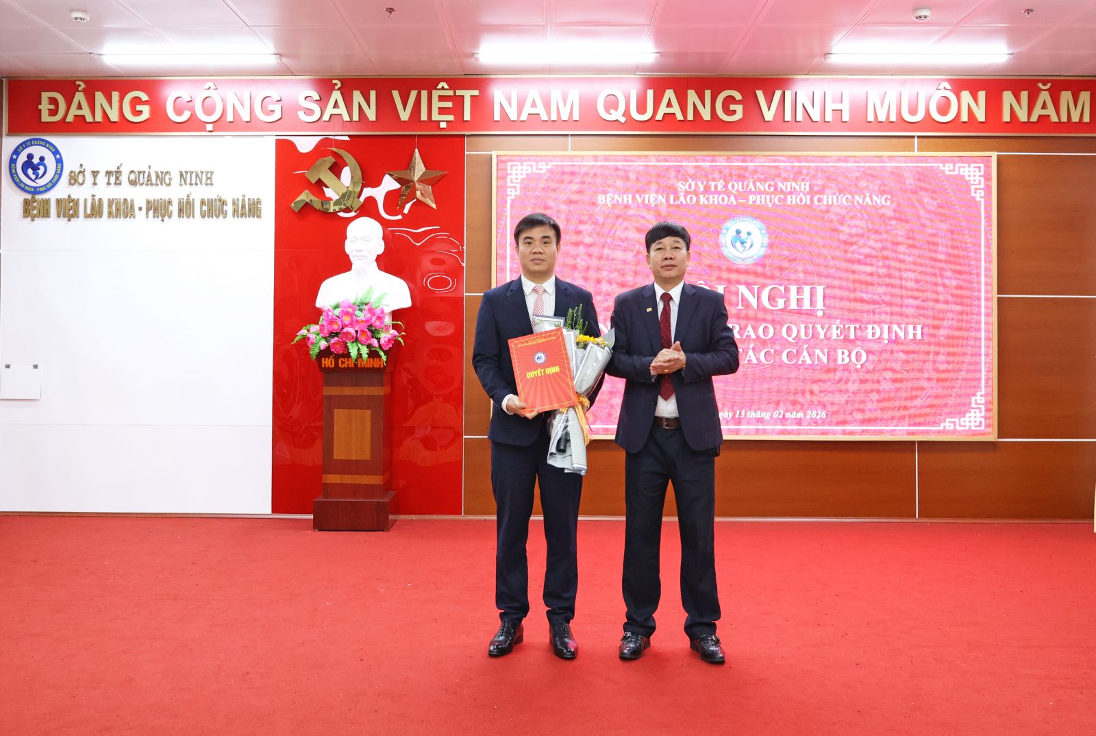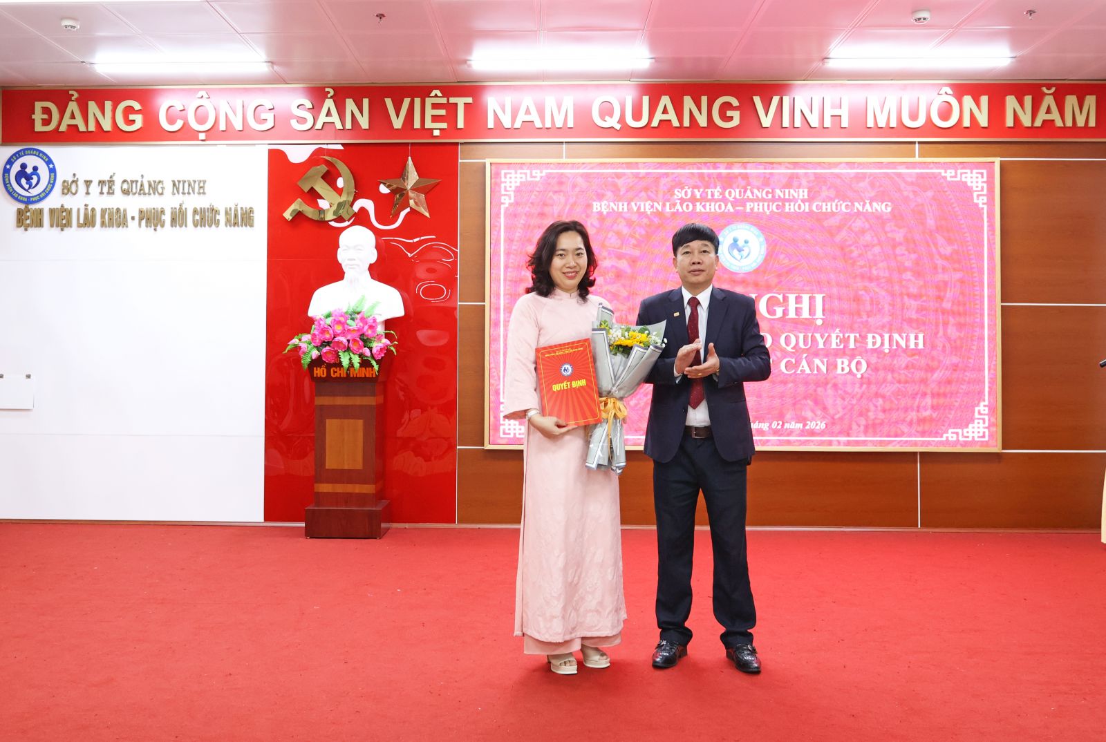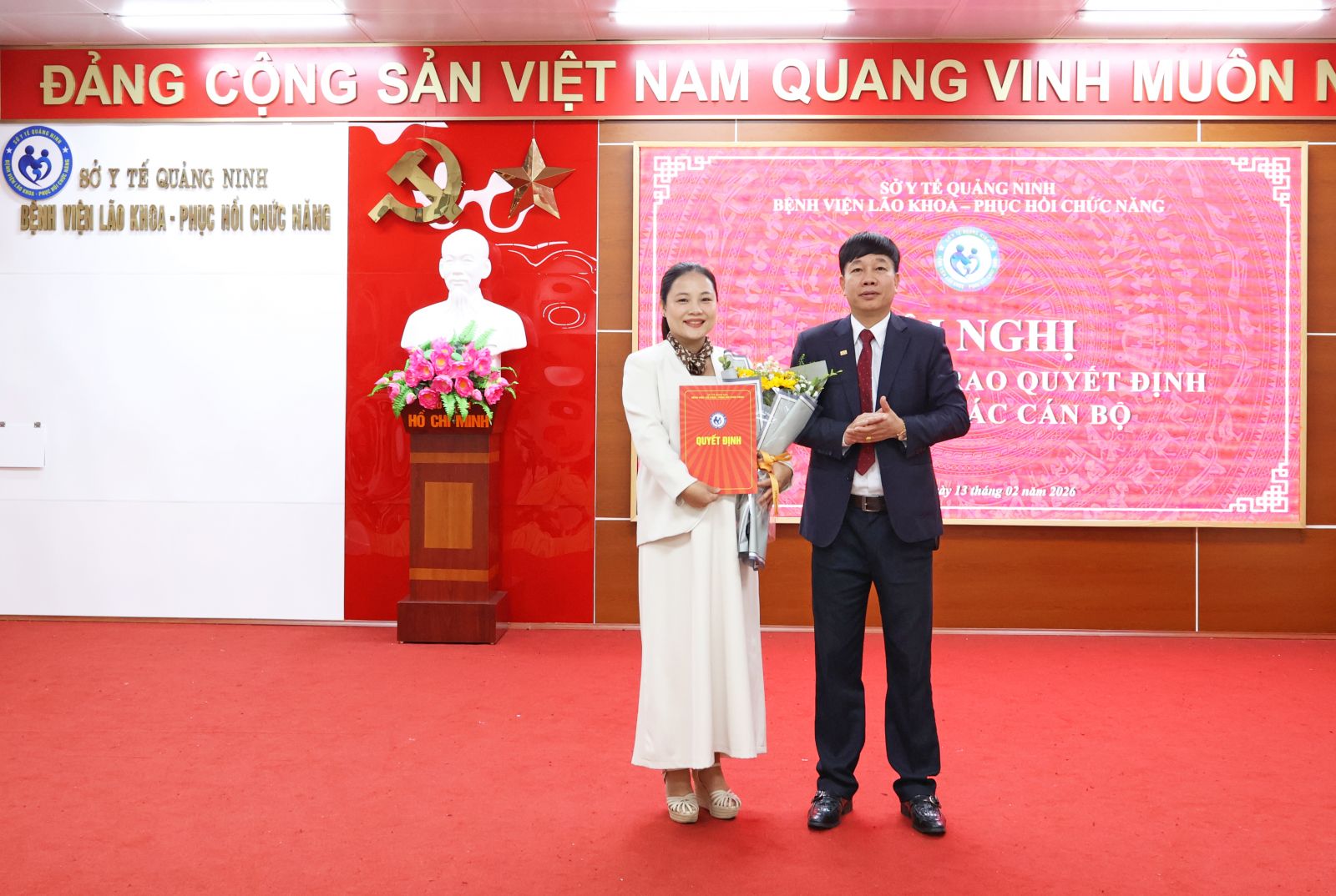 Trong không khí phấn khởi của những ngày đầu xuân năm mới 2026, sáng ngày 13/02/2025, Bệnh viện Lão khoa - Phục hồi chức năng Quảng Ninh đã tổ chức Hội nghị công bố và trao quyết định về công tác cán bộ nhằm kiện toàn tổ chức bộ máy, đáp ứng yêu cầu nhiệm vụ trong giai đoạn phát triển mới của đơn vị.