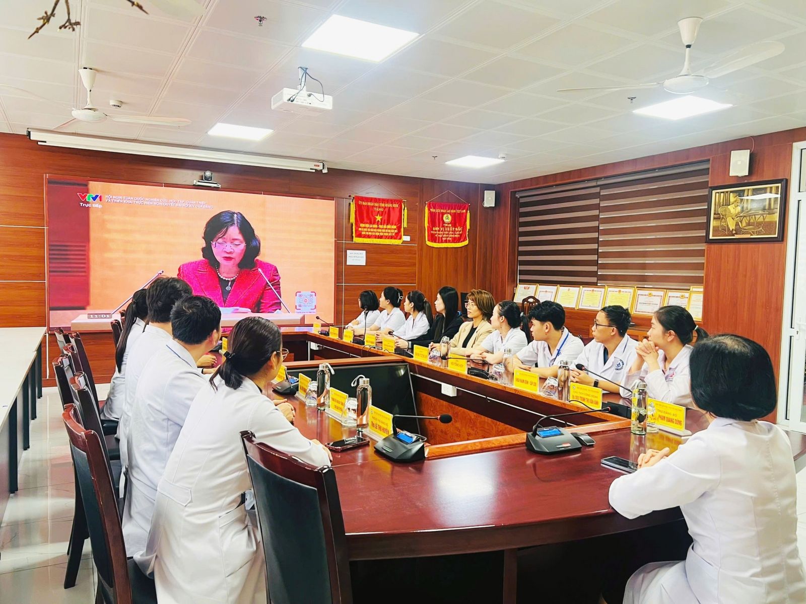 Sáng ngày 07/02/2026, tại phòng giao ban Bệnh viện và các khoa, phòng chuyên môn, đông đảo cán bộ, đảng viên, viên chức, người lao động cùng người bệnh và người nhà người bệnh đã theo dõi chương trình truyền hình trực tiếp Hội nghị trên kênh VTV1.