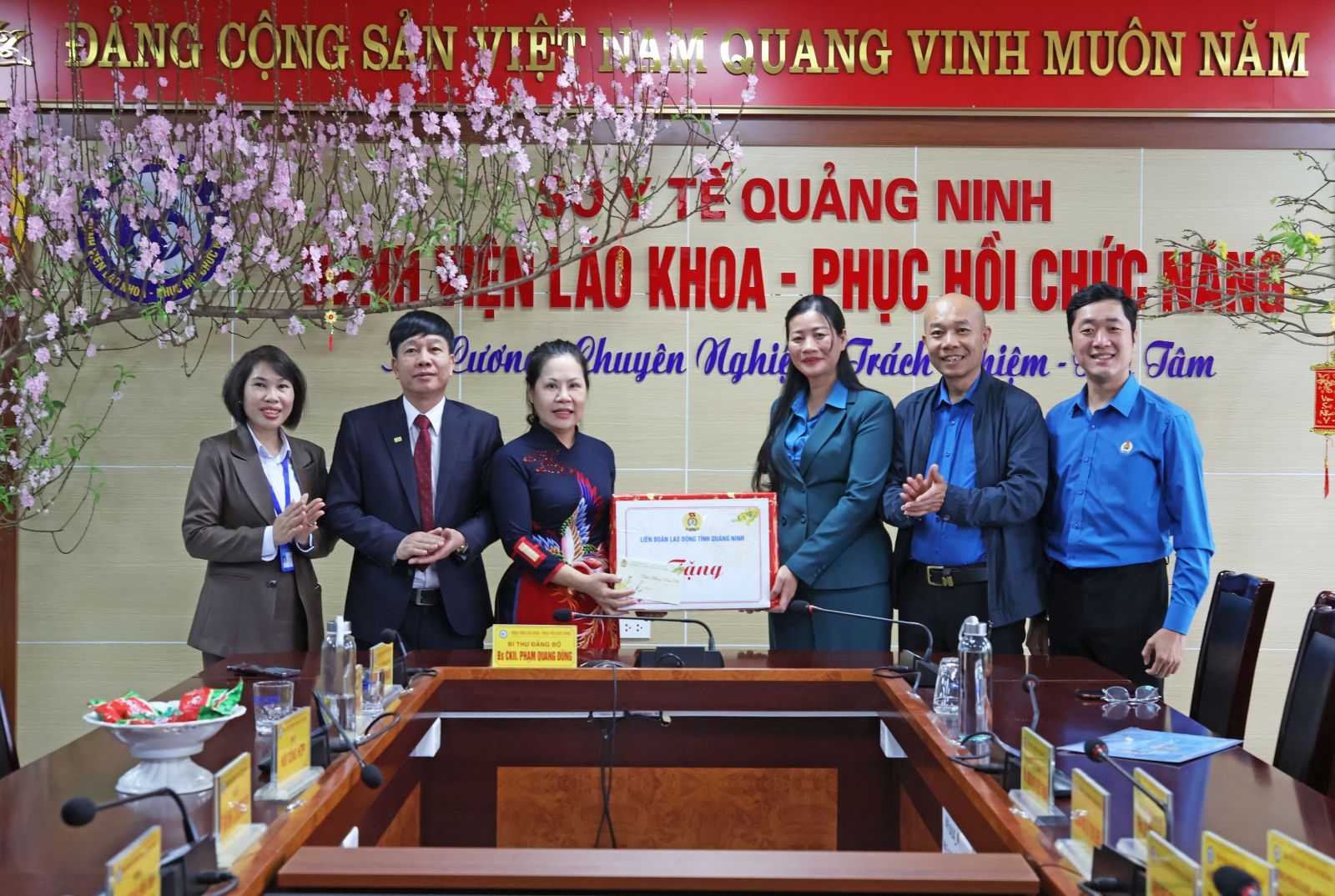 Nhân dịp Tết Nguyên đán Bính Ngọ 2026, ngày 13/02/2026, Đoàn công tác của Liên đoàn Lao động tỉnh Quảng Ninh do đồng chí Đặng Thị Kim Chung – Phó Chủ tịch Liên đoàn Lao động tỉnh làm Trưởng đoàn đã đến thăm, động viên và chúc Tết cán bộ, viên chức, người lao động Bệnh viện Lão khoa - Phục hồi chức năng Quảng Ninh.