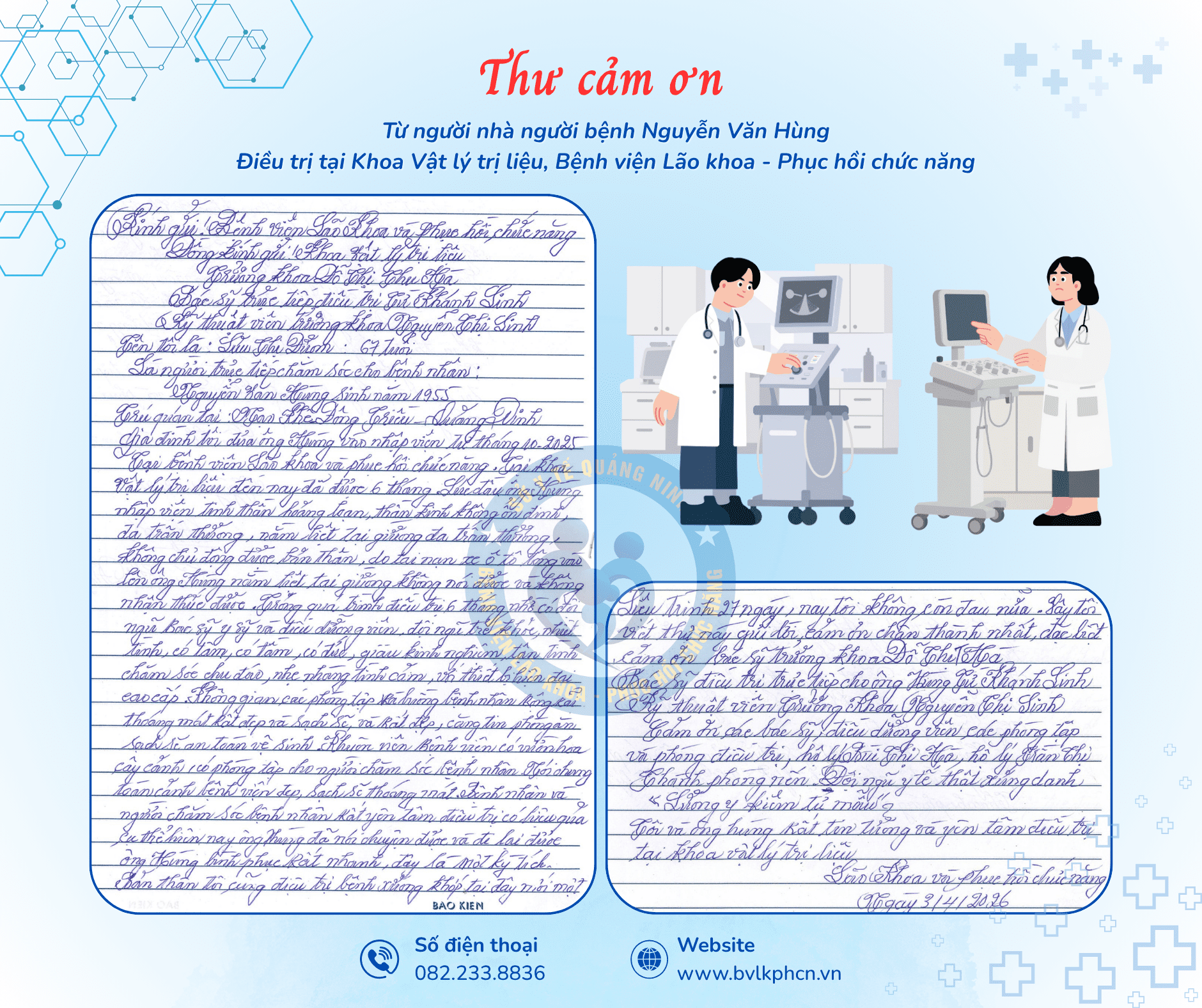 Bệnh viện Lão khoa - Phục hồi chức năng trân trọng chia sẻ những dòng thư cảm ơn chân thành từ người bệnh và gia đình sau quá trình điều trị tại Khoa Vật lý trị liệu.
