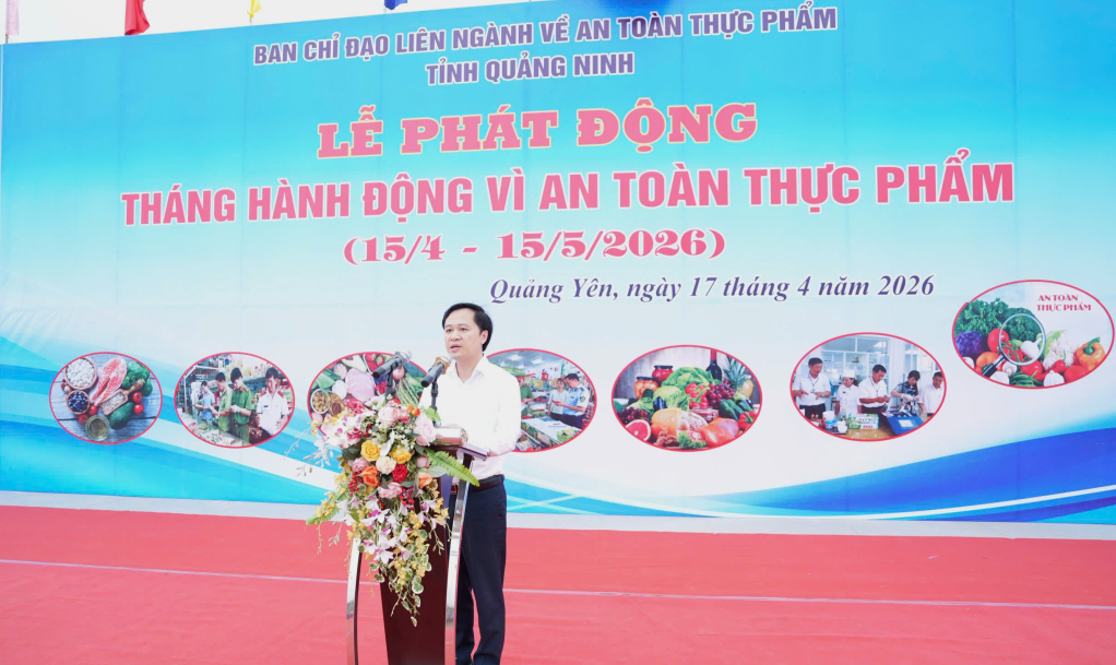 Ngày 17/4, tại phường Quảng Yên, Ban Chỉ đạo liên ngành về an toàn thực phẩm tỉnh tổ chức Lễ phát động “Tháng hành động vì an toàn thực phẩm” năm 2026 với chủ đề “Bảo đảm an toàn thực phẩm, phòng ngừa ngộ độc thực phẩm trong dịch vụ ăn uống và thức ăn đường phố”.